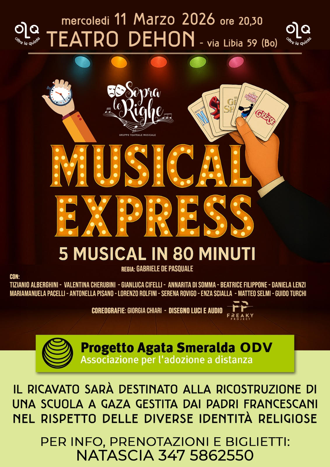 Sarà di scena il musical “MUSICAL EXPRESS” – spettacolo di beneficenza – il cui ricavato sarà destinato alla ricostruzione di una scuola a Gaza, gestita dai Padri francescani nel rispetto delle diverse identità religiose.